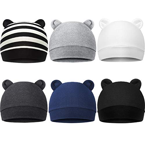5. six Pieces Newborn Baby Hat Bear Ears Babe Caps Baby Boy Daughter Toddler Hats Babe Beanie Caps for 0-three Months (Black White, Black, Navy Blue, Black